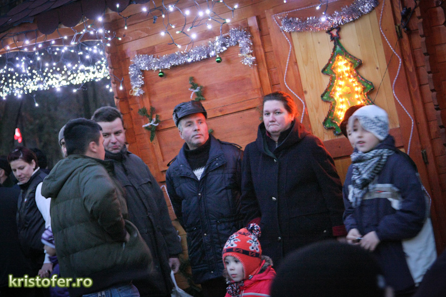 Uitându-ne câteva secunde la brad, am putea spune că Moș Nicolae a fost cam zgârcit anul acesta. Totuși, a fost mai darnic cu pe partea de dulcegării. Două-trei domnișoare au împărțit bomboane și ciocolată celor mici. În altă ordine de idei, de mult timp nu am mai văzut un parc atât de plin.