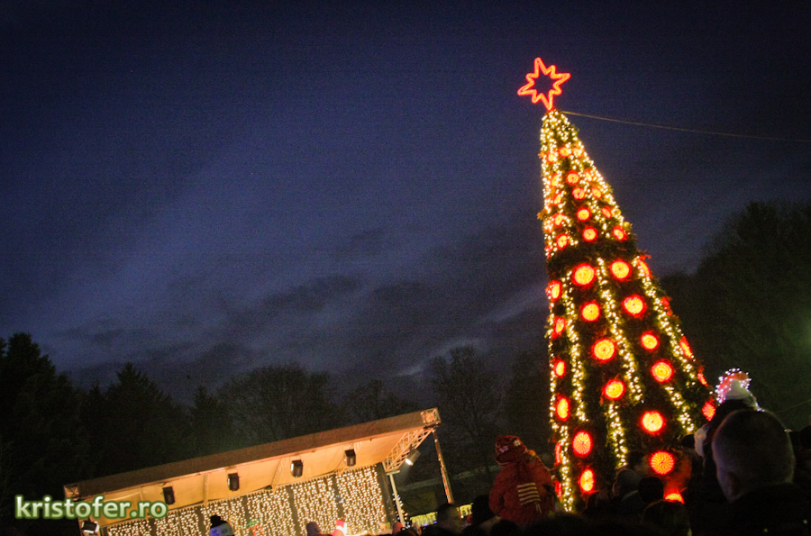 Vă las cu fotografii și cu clipul realizat la momentul aprinderii bradului.