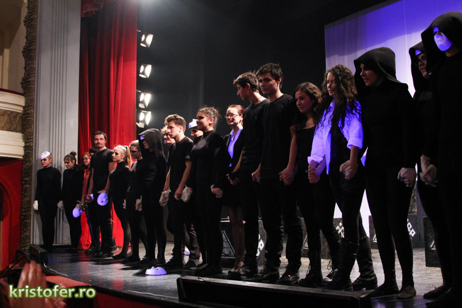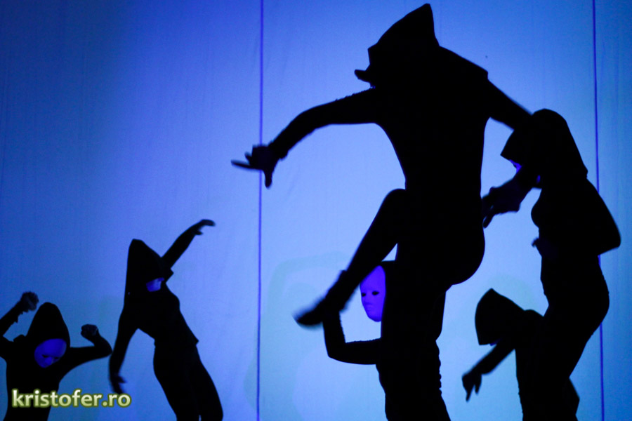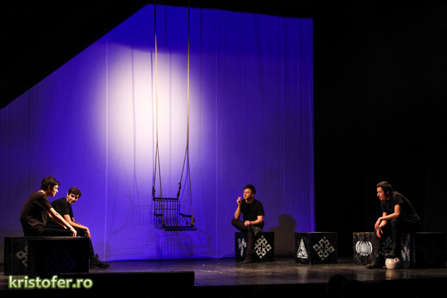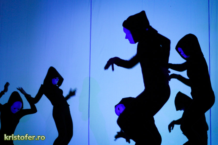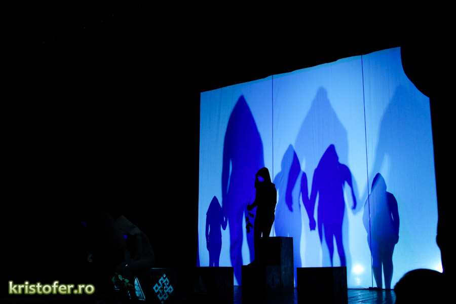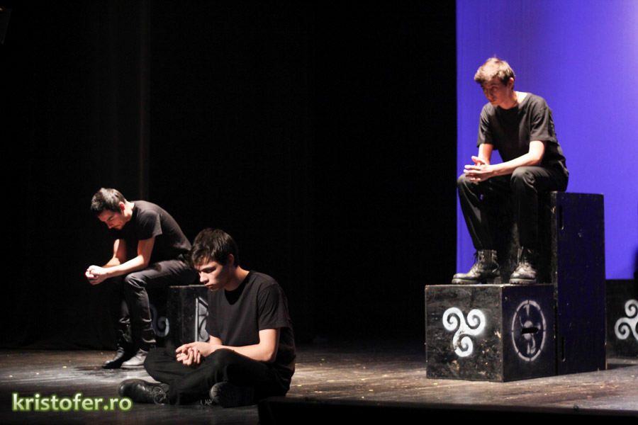 Am fost exaltat de scenografie și de selecția pieselor ce rulau pe fundalul momentelor „minionilor” (sper c-am scris bine). Parcă așa se numeau omuleții negri cu mască ce reprezentau reflecția abstractă a personajelor. Nu vă speriați! Doar am citat din tinerii actori, puțin pasionați, se pare, de „lemnoleză”.
